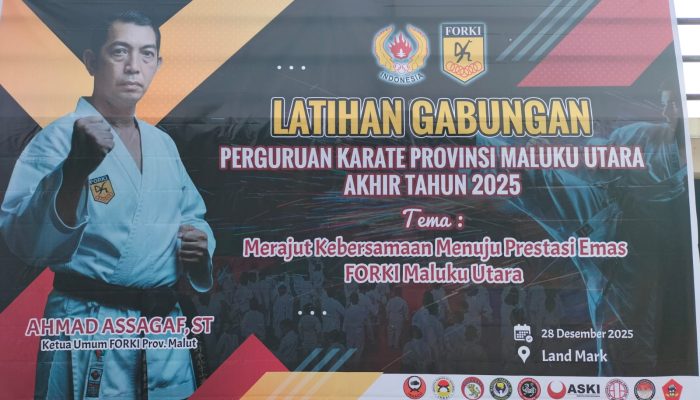 Latihan Gabungan FORKI Maluku Utara di Lanmark Kota Ternate sedot perhatian publik Malut. Helatan yang sengaja digelar di pekan terakhir 2025 jadi Starting-Spirit komunitas FORKI pasca Musyawara Provinsi Luar Biasa di Maluku Utara. Nakhoda Baru FORKI, Habib Ahmad Assagaf ST memastikan rutinitas Latihan Gabungan sebagai wadah pembibitian dan penguatan kualitas atlit secara terukur.